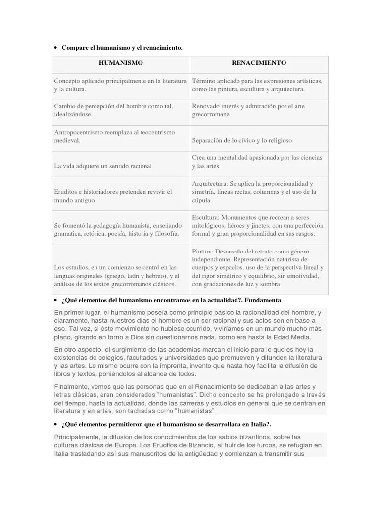 Aquí Humanismo Y Renacimiento Que Son Caracteristicas Y Diferencias Diferenciador